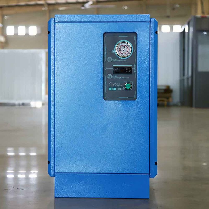O secador de ar refrigerado para compressor de ar de parafuso é essencial para remover umidade, vapores de óleo e contaminantes dos sistemas de ar comprimido. Nosso secador de ar de alto desempenho garante a qualidade do ar ISO 8573-1 Classe 4, protegendo seu equipamento contra corrosão e tempo de inatividade.